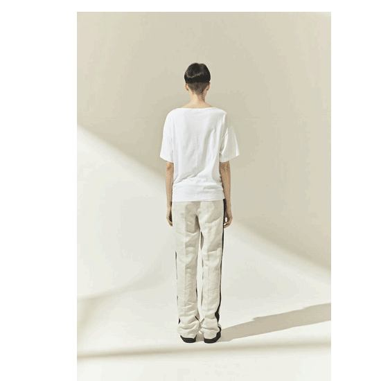 CINOHのリネンパンツ。 【ブランド紹介】 茅野誉之氏が2008年にスタートした「ベスリール」を2014SSより「CINOH(チノ)」に改称。“一瞬の時の中に存在するだけでなく、ワードローブ、想い出に残るモノ創り”を理念とし、伝統のない自由な発想から生まれる東京のストリートをベースに展開。今までの服装史、その背景にあるカルチャー、現在の世の中からシーズンごとに感じとったモノ・コトを、遊び心と高揚感をもった大人のリアルクローズへと落とし込んでいる。 【商品説明】 フランスリネンの細番手を使用した高密度のサテン。 程よい落ち感と光沢、軽さがあります。 DESIGN 側章を変形させベルボトムのような雰囲気に見えるストレートパンツです 膝が絞られているように見えますが実際には膝のラインを拾わないので、より美しいラインに見えます。