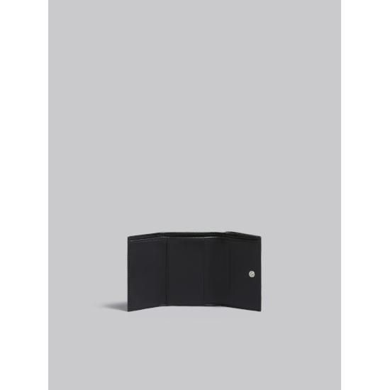 MARNI(マルニ) ブラック レザー製 三つ折りウォレット、マルニメンディング装飾