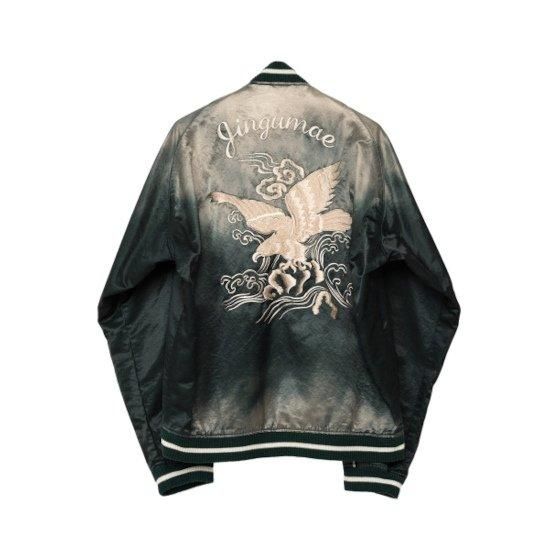 Maison MIHARA YASUHIRO 24SS collection 【ブランド紹介】 Maison MIHARA YASUHIRO メゾンミハラヤスヒロ 1997年にシューズブランドとしてスタート。既存の枠にとらわれない発想や、深く踏込んだデザインワークをシューズはもちろんの事、遊び心のある服をテーマに国内外問わずそのデザインは注目を浴び続けている。 【商品紹介】 スーベニアジャケット 横須賀発祥のスカジャンをインスピレーション源にデザインされたスーベニアジャケット。 ヴィンテージ加工が施されています。 ダブルジップ仕様。 フロントポケット。 バックに"jingumae"の文字刺繍。 【素材】 COTTON70% RAYON30%