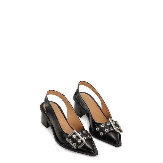 GANNI【ガニー】FEMININE BUCKLE SLINGBACK PUMPS BLACK (S2331)