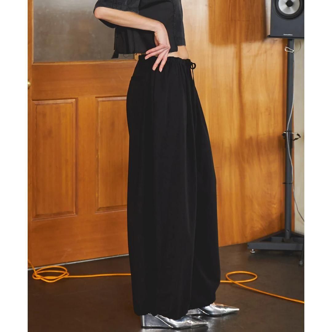 ・裾のドローストリングがアクセントになったワイドイージーパンツ。