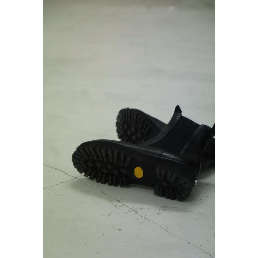 丁寧に研磨した六角ボルトを打ち込んだビブラムソールのサイドゴアブーツ。