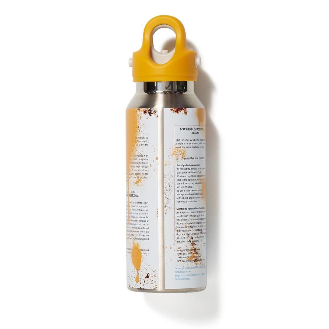 【ブランドについて】 デザイナー井野将之は東京モード学園を卒業後、企業デザイナーを経て、2012年にパタンナー村上高士と共にdoublet(ダブレット)を設立。 2013年に「2013 Tokyo 新人デザイナーファッション大賞」プロ部門のビジネス支援デザイナーに選出され、最高位の東京都知事賞を受賞。 「違和感のある日常着」をコンセプトに、遊び心溢れるリアルクローズを展開しています。 doubletのデザインは、ユーモアのあるフリンジ風の刺繍ワークや、代表的アイテムのスカジャンなどに見られる、様々な文字やモチーフの刺繍を重ね合わせていく高度な「刺繍テクニック」が特徴です。2016年に「第3回 TOKYO FASHION AWARD」を受賞、2017年に東京コレクションで初のランウェイを発表、そして2018年には「LVMHヤングファッションデザイナープライズ」グランプリを受賞し、今最も注目を浴びるブランドの1つとして話題を呼んでいます。 【商品詳細】 アメリカ発の真空断熱ボトルブランド〈REVOMAX〉とのコラボレーションによって生まれた、スプレー缶のようなデザインのウォーターボトルです。 グラフィティカルチャーに見られるストリートの空気感を感じさせるデザインとカラーリングが特徴です。 片手で開閉できるユニークなキャップ構造と、高い保温・保冷性能を備えており、炭酸飲料も使用できます。 「悪そうな人がマイボトルを持っていたら、どんな見た目になるんだろう?」という、ちょっとした遊び心からスタートしたこのデザインは、日常に馴染む道具でありながら、手にするだけでファッションアイテムになるような存在感を放ちます。 街中で、ジムで、職場で。この水筒を持っているだけで、少しだけ自分のスタイルに自信が持てる——あなたにとってそんな一本になれたら嬉しいです。 【素材】 STAINLESS STEEL / POLYPROPYLENE 100% 【サイズ】 OS(ワンサイズ) ※表記はあくまで目安サイズ表記となりますので、予めご了承くださいませ。 撮影環境や、お使いのモニターによって、実際の商品と色味が異なる場合がございます。 平置きにて採寸を行っておりますが、若干の誤差が生じる場合がございます。 ※店舗と在庫を共有しているため、ご購入後にキャンセルさせていただく場合がございます。 予めご了承いただけますようお願い申し上げます。