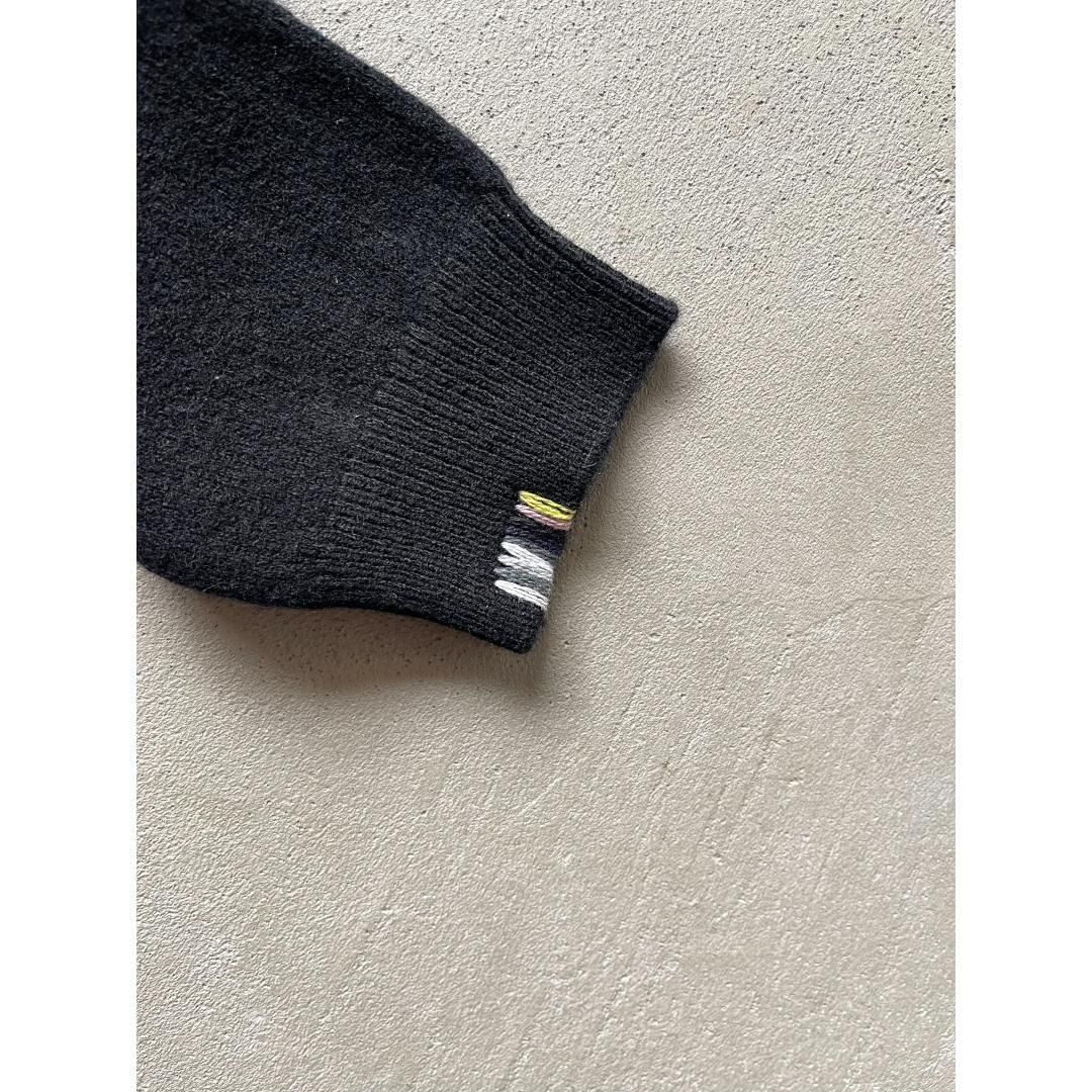 袖口と裾はリブ編み仕上げで、カジュアルながら上品さも感じられるシックな一枚です。