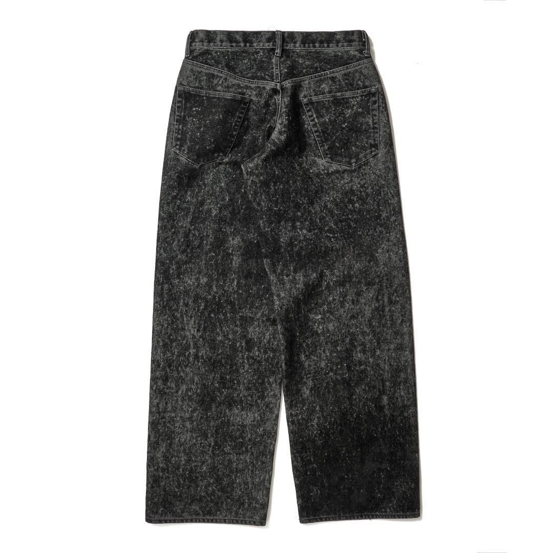 フロッキープリントで加工したデニムを使ったストレートパンツ。