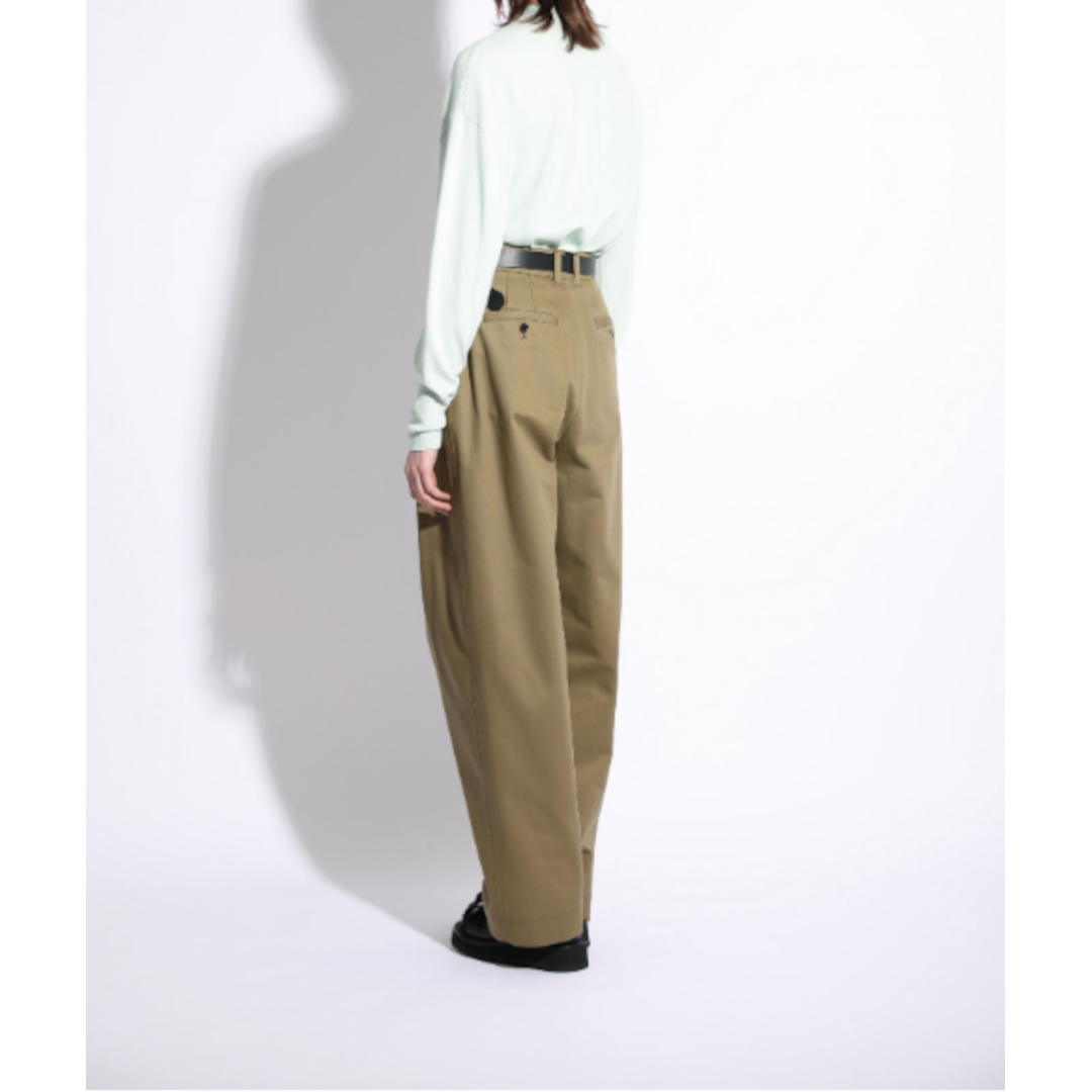 【ブランド概要】 ブランド名SACRA (サクラ)は、ディレクター夫妻の娘の名に由来。. また日本の情緒を世界中にアピールしていきたいという強い思いが込められています。. ブランドコンセプトは「様々なファッションを経てたどりつく大人の女性の余裕と遊び心、垣間見せるセクシーさ」。. オン・オフや緊張感・リラックス感等、相反する要素を素材やカッティングで表現したアイテムを提案。. 時代の空気感、今の気分を大切にする女性のためのブランド。 【商品概要】 太番手コットンを高密度に織り上げたツイル素材を使用したチノパンツ。 太番手ならではの畝の立ったツイル地が独特な表情を放つ。 ほんのり丸みを帯びたカービーシルエットのワイドパンツはモードカジュアルな雰囲気に。 絶妙な深い色合いのカーキカラーも新鮮で、スタイルをアップデートしてくれるシーズンレスな一着です。 【素材】 コットン 100% 【サイズ】 36 ウエスト70cm ヒップ102.7cm 股上35cm 股下66.5cm 38 ウエスト74cm ヒップ109cm 股上36cm 股下68.5cm 実際のサイズと若干誤差がある場合がございます。 撮影時の状況により実際の商品の色より多少濃淡に写っている場合もございます。 ご了承くださいますよう、お願い申しあげます。 ※店舗と在庫を共有しておりますので商品購入後にご注文をキャンセル処理させて頂く場合がございます。