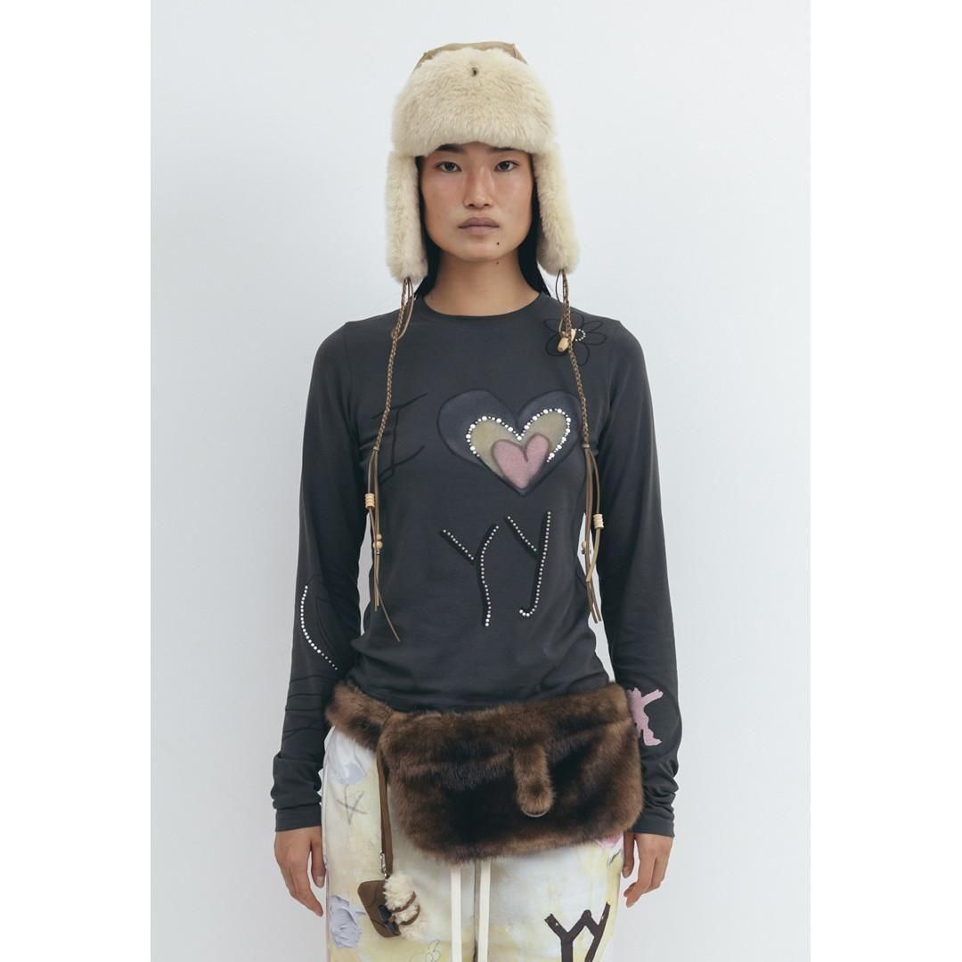 OPEN YY | オープンワイワイ BEADED I LOVE YY TEE, CHARCOAL GRAY (YY254TS002)