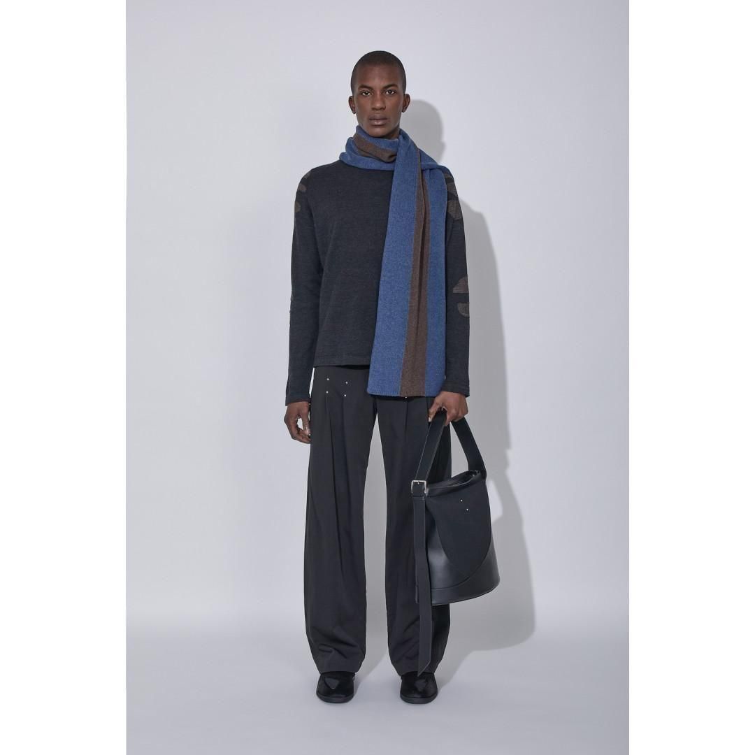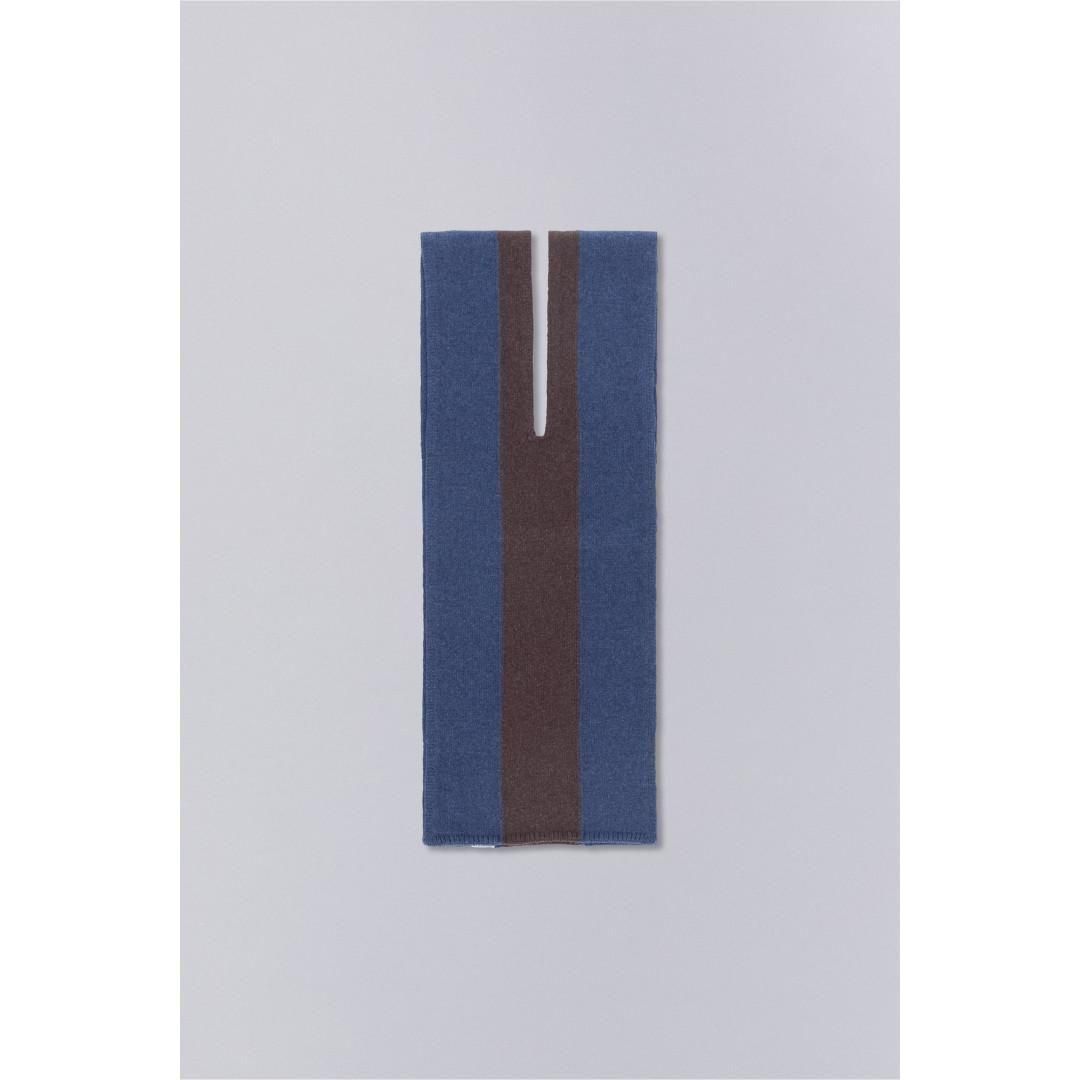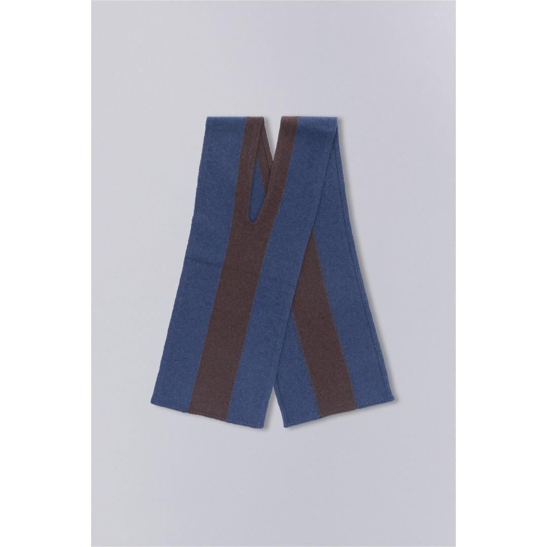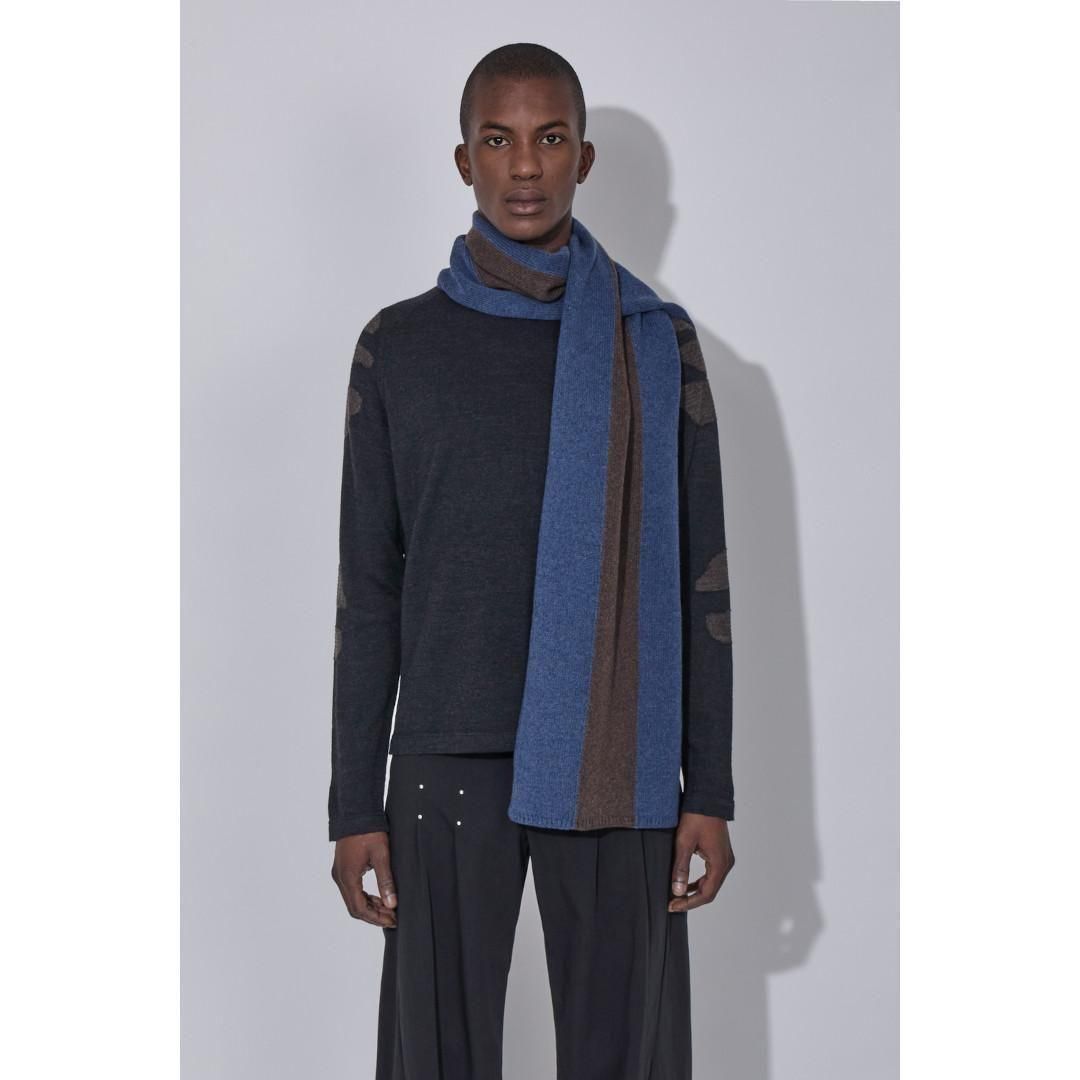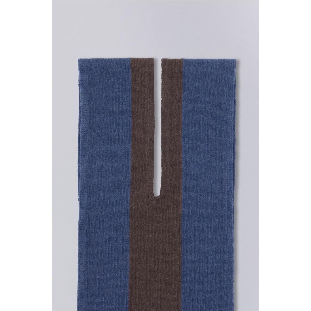 ウール糸で編み上げたTerrスカーフは、コントラストの効いたストライプと中央のスリットが特徴。