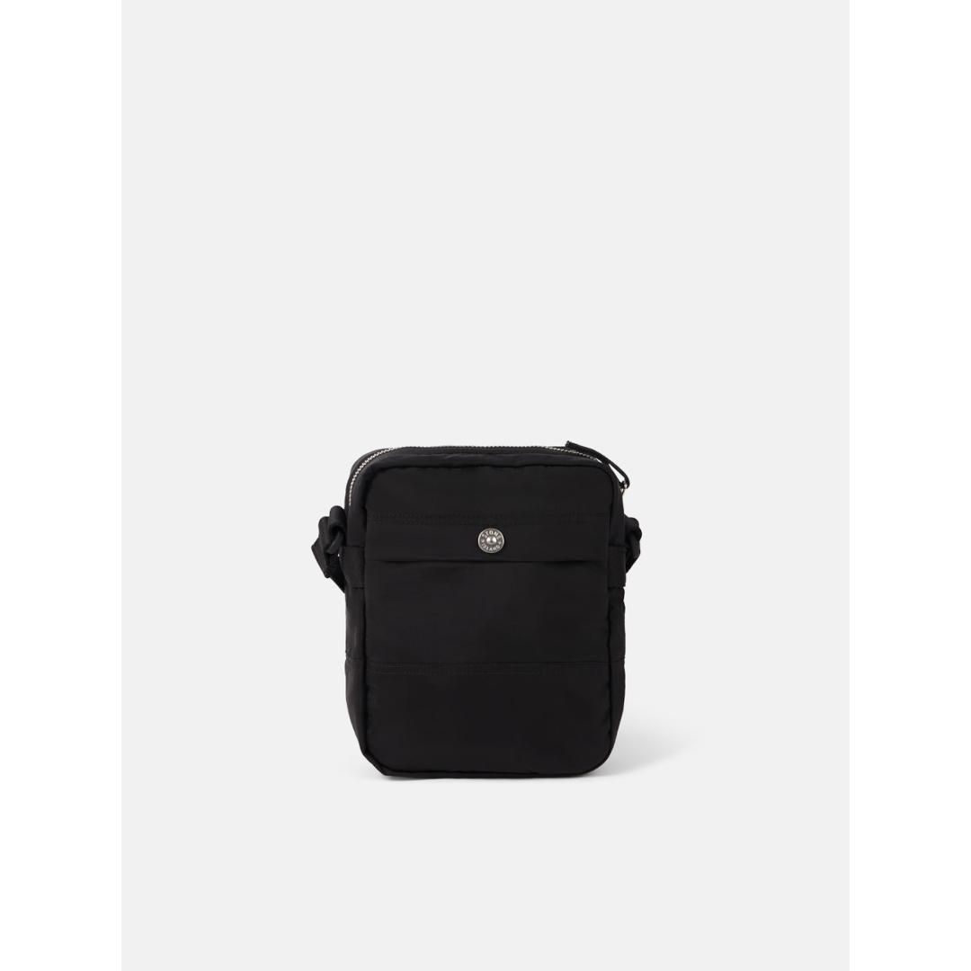 前面にファスナー開閉式のベローズポケットとCompassロゴパッチ、背面にスナップボタン留めのポケットを備え、内側にはリップストップナイロンの裏地とスナップ留めポケットを配置。開閉は上部ファスナー仕様。調節可能なナイロンストラップにより、ショルダー・クロスボディの両方で着用可能。